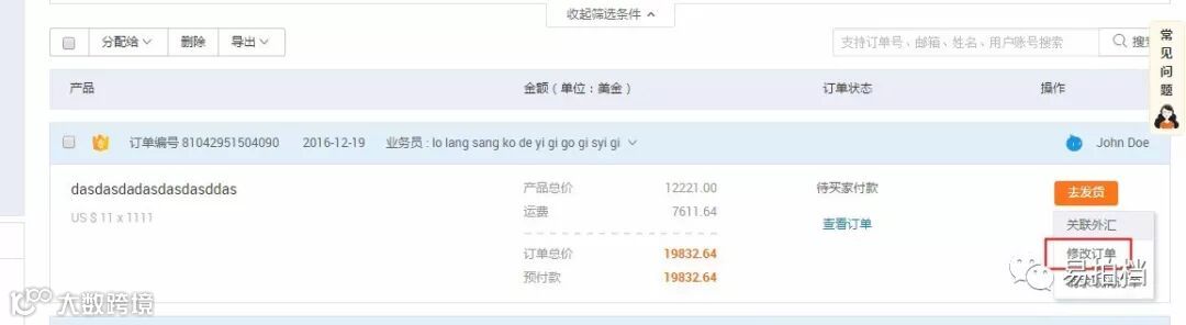 3、支付后的订单修改,是需要买家确认的,若买家一直不确认,卖家可以在后台操作撤销修改(只要买家未确认的情况下均可操作撤销,无时间限制):