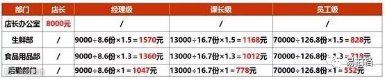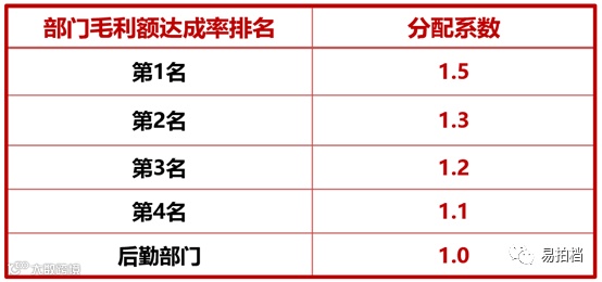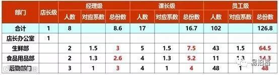 1、分配系数:按部门毛利达成率的排名情况,确定各部门对应分配系数。例如:某店生鲜部毛利达成率在该店四大营运部门中排名第1,生鲜部对应分配系数为1.5,即生鲜部的经理、经理助理、课长、员工的分配系数均为1.5。