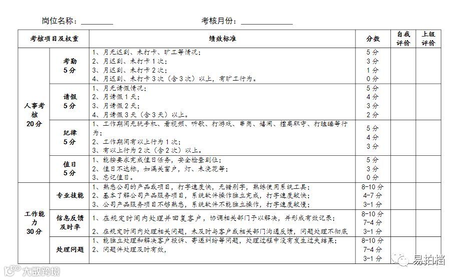 你可能也会说,我问了,他们都不说,都不愿意考核。我只能说你沟通的方法和态度没有到位。关于绩效的制定和执行的沟通我抽时间再另外开贴吧,这个也是非常重要的。有关这一点我暂且说这么多,留给大家去感悟吧。