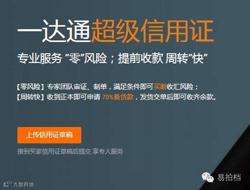 2、如需买断,单据无不符点或银行承兑后,且受益人为一达通(如为转让信用证,需第一受益人为一达通)。