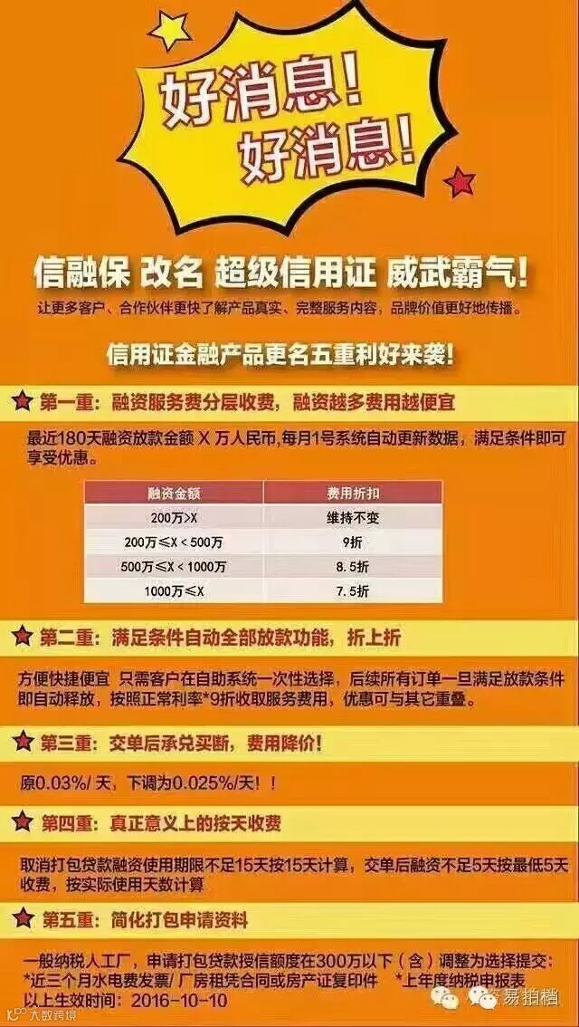 1、打包贷款针对备货期间的融资,利率 0.04%/天。