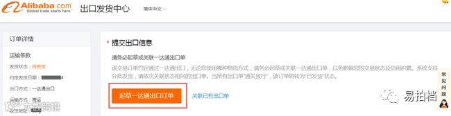 ü 订单总金额3000美金以上的,必须选择“通过一达通代理出口”,通过一达通代理出口的,发货需关联一达通委托单。