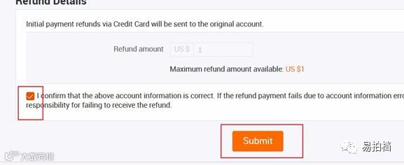 单纯使用信用卡/e-checking支付的订单,则最小退款金额无限制;