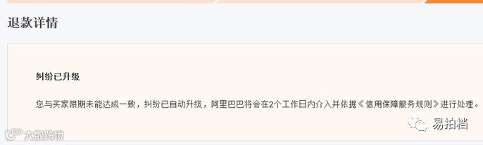 注:买家提交退款要求后需要卖家在后台信用保障订单详情中确认买家提交的申请,平台才会在2个工作日内介入并进入退款流程;