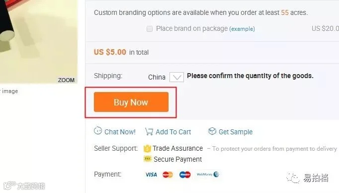 2、买家通过点击卖家一口价产品”buy now“下信用保障订单;