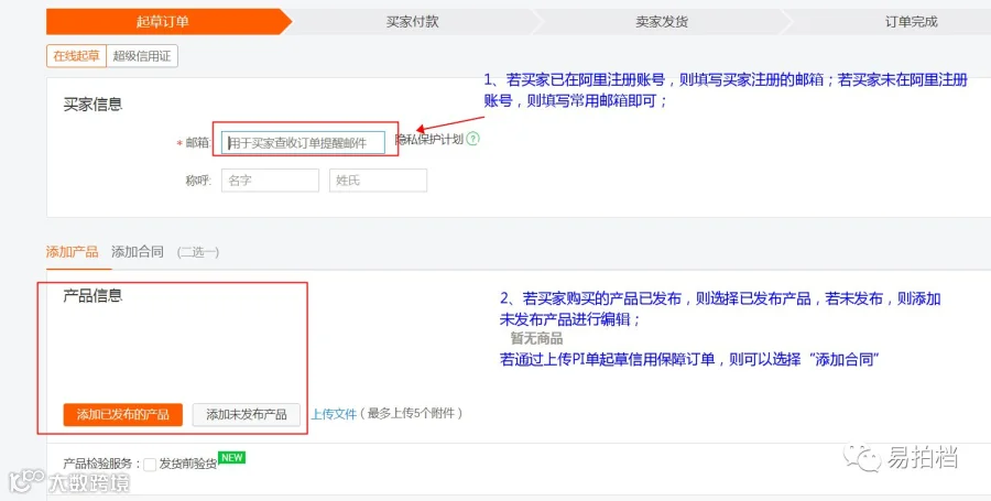B.不使用一达通代理出口/买家通过点击一口价产品“buy now"下的信用保障订单