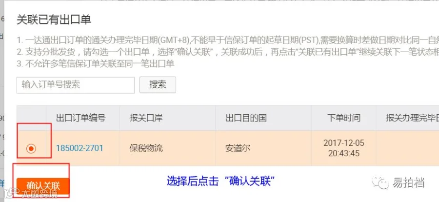 若未起草过一达通出口订单,则点击起草一达通出口订单,若已起草过一达通出口订单,则选择关联已有的一达通出口订单;