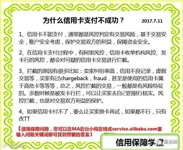 对策:若订单可以选择使用信用卡支付,但是支付后提醒支付失败,建议您优先引导买家与其发卡行联系,看是否发卡行拒绝了此次支付请求导致的支付失败;