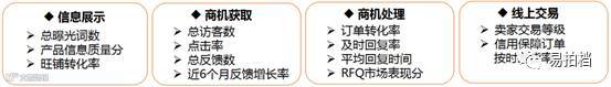 v RFQ市场表现分:店铺在采购直达市场的表现分,衡量的因子包含RFQ报价量、RFQ登录天数、买家好评率、平均报价响应时长、24小时报价响应率、RFQ入口提交的通关完成的信用保障订单量以及订单金额。