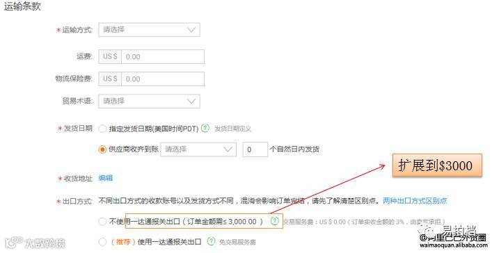 1)产品金额2800美金+运费200美金=订单总价3000美金(可使用非一达通订单方式出口)