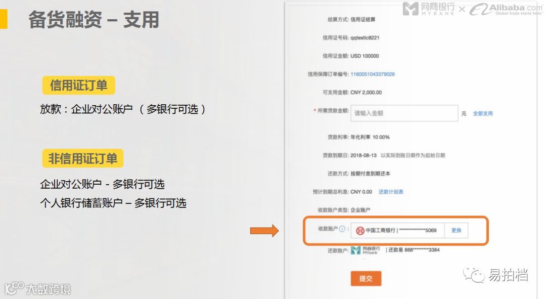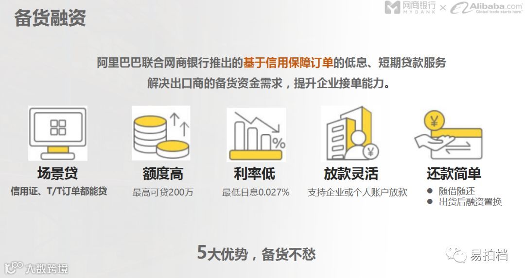 2,信保订单+非信用证,备货融资尾款部分70%内,预付款要大于10%,单笔20万人民币内,循环200万人民币,利息低至0.027%每天,