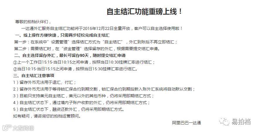一达通外汇服务自主结汇功能将于2016年12月22日全量开放,客户可以自主选择使用啦!