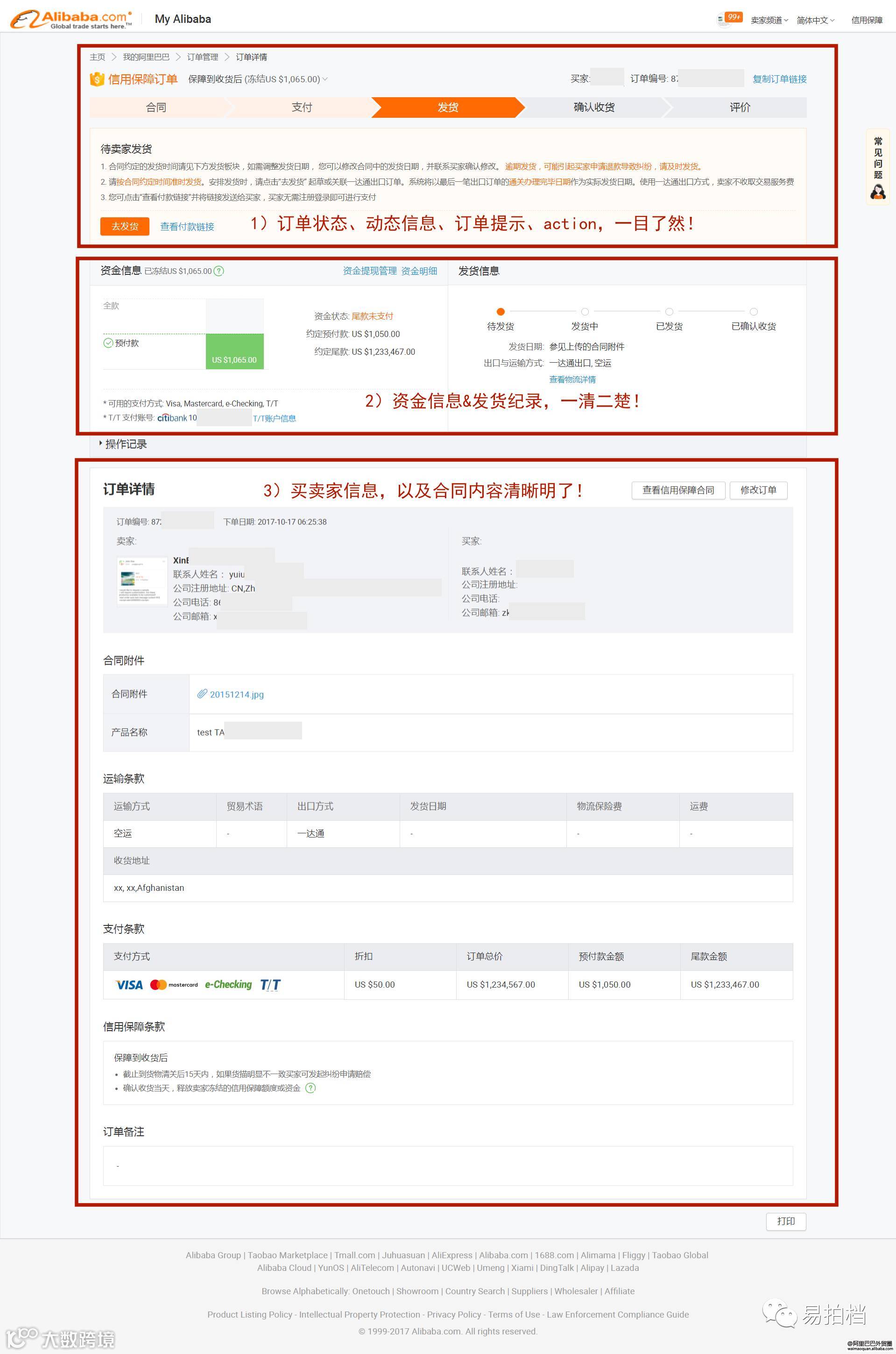 订单状态,动态信息,订单提示,资金信息,买卖家信息等全部展示很详细了