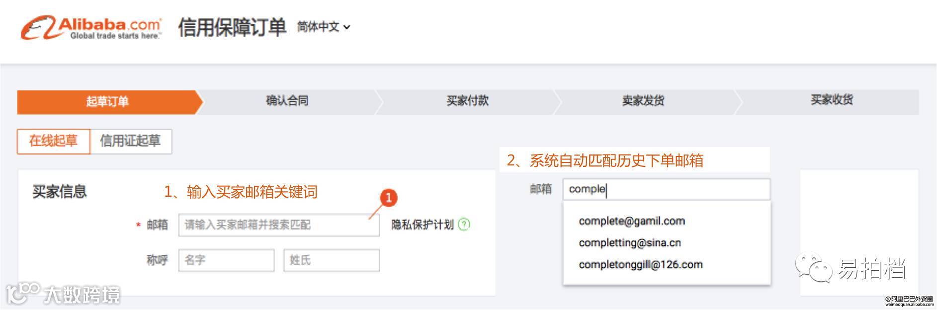 2)新增历史交易买家邮箱记忆功能,起草订单时输入买家邮箱关键词,系统自动匹配历史的下单邮箱