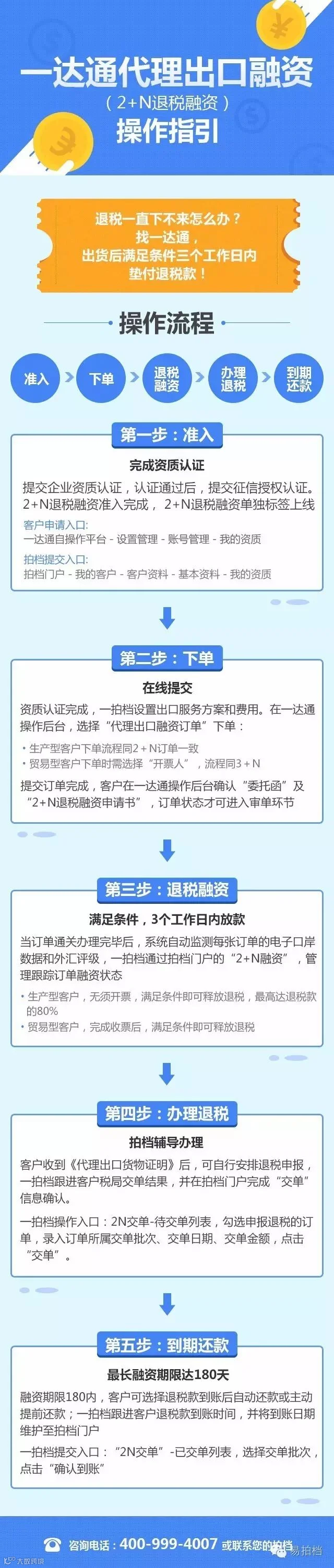 2+N也能退税融资了,低门槛,随借随还,满足你个性化的退税融资需求。