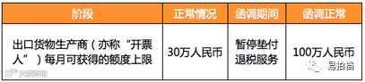 1、阿里巴巴一达通将对每个使用3+N垫付退税服务的开票人开放每月最高30万人民币的额度;