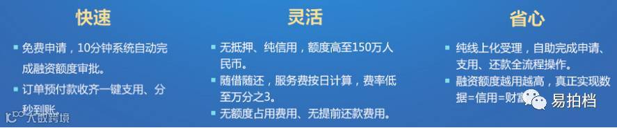 大家还记得大明湖畔的“信用保障极速贷”吗?这款号称极致体验、极速服务、专为诚信中国供应商付费会员,解决备货资金难以的融资产品。在上次的宣导中,我们承诺并实现了他们的如下功能: