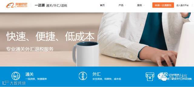 “一达通”是阿里巴巴旗下一站式外贸综合服务平台,为中小企业提供专业、低成本的通关、外汇、退税及配套的物流和金融服务