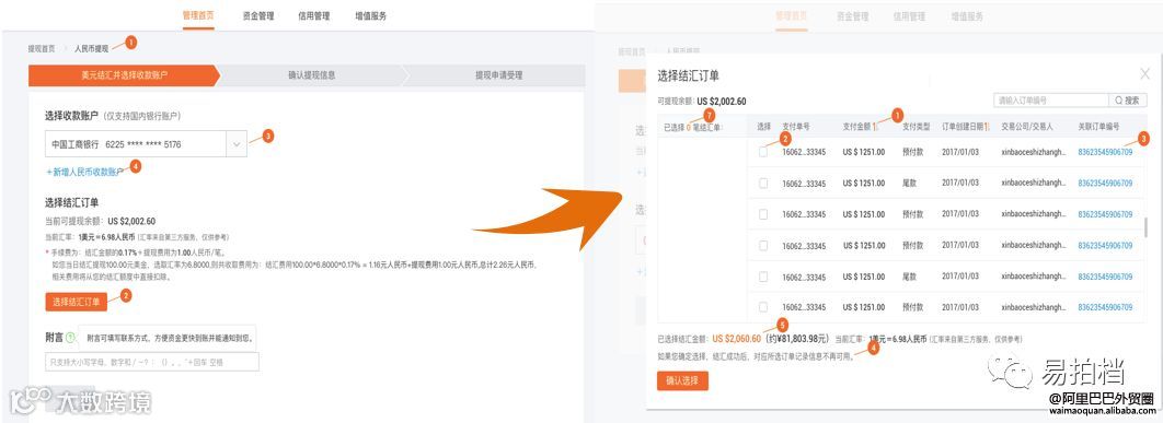 第二步:绑定银行账户并选择需结汇订