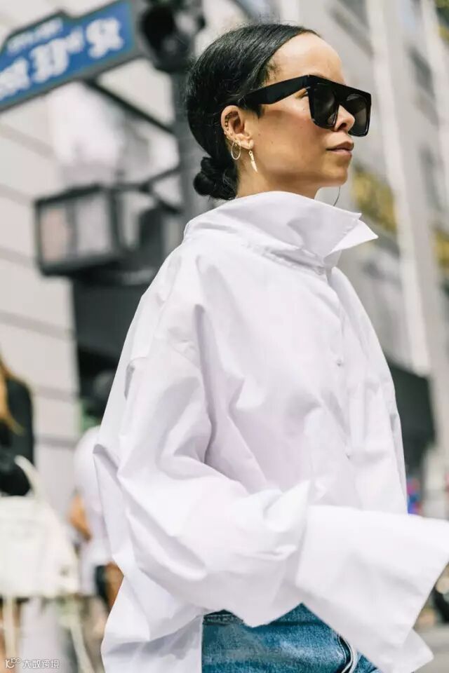 今年出鏡率比較高的白襯衫就是oversize的這種,搭配牛仔褲或者裹身裙都能有不錯的效果,而且自帶的隨性時髦感也是白襯衫獨有的。