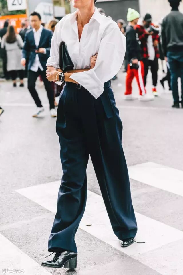 現在白襯衫最流行的穿法就是,將白襯衫紮在腰上,這有兩個重要原因,一來可以遮擋臀部,二來可以很好的展現女性的瀟灑。既休閑,又時尚。