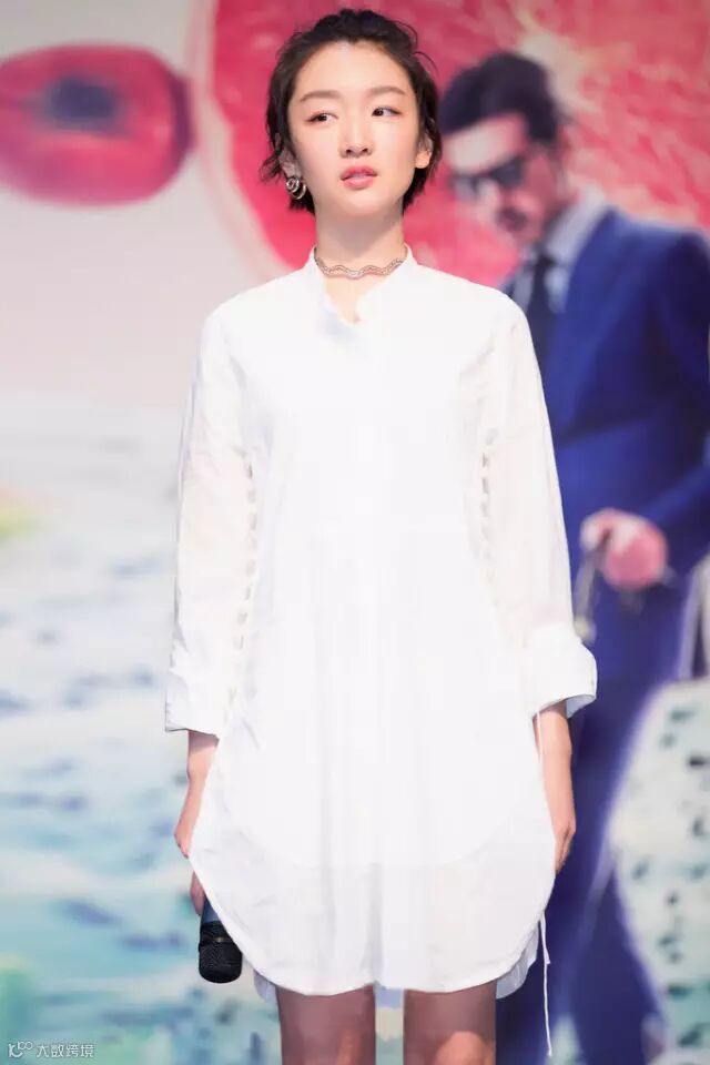 周冬雨選擇了Chloe長款白色襯衫,搭配她俏皮的精靈頭,美出新高度。