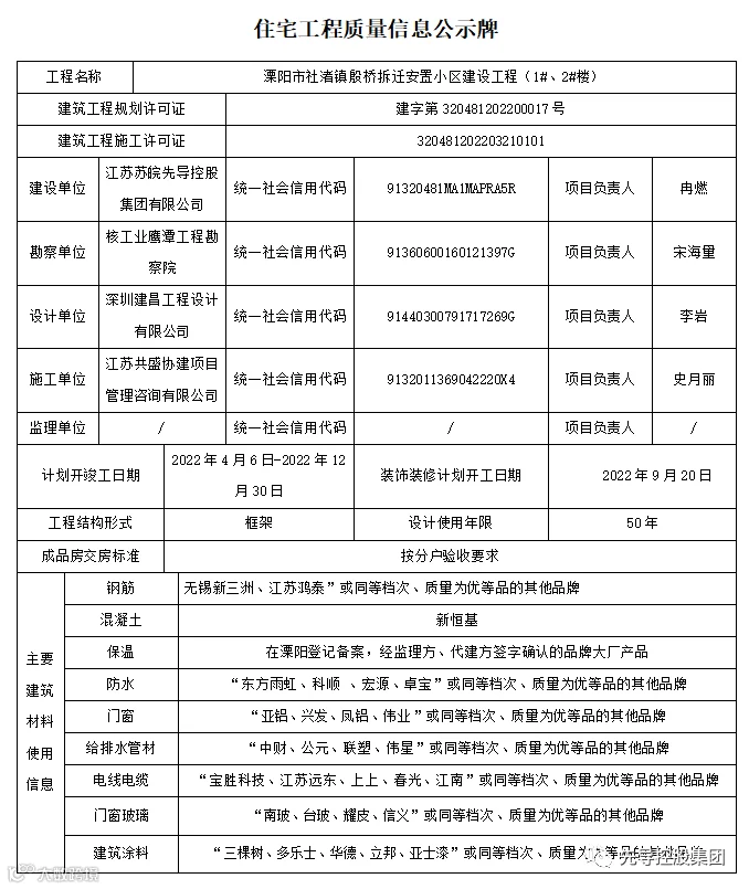 溧阳市社渚镇殷桥拆迁安置小区建设工程(1#、2#楼)信息公示