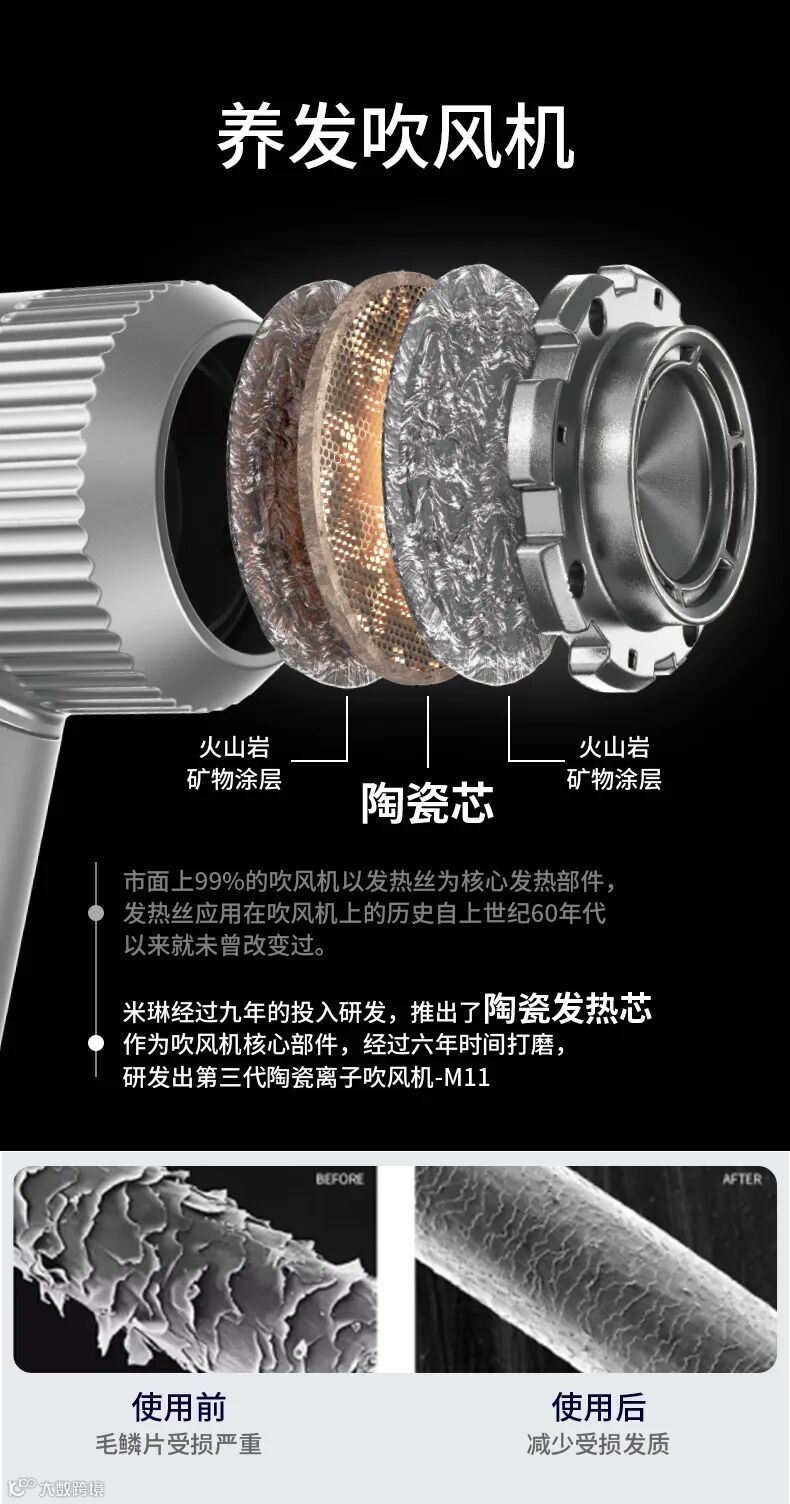 陶瓷芯发热是广州米琳电器首次用于吹风机的发热方式。