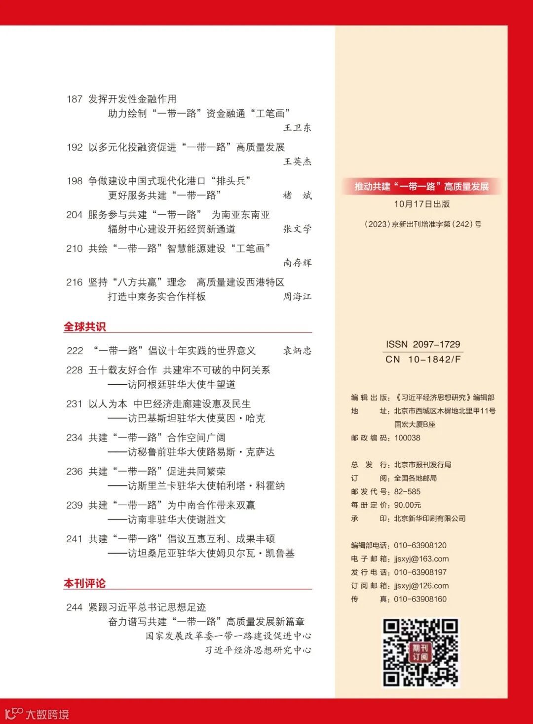 ▲《习近平经济思想研究》期刊推动共建"一带一路"高质量发展专刊目录