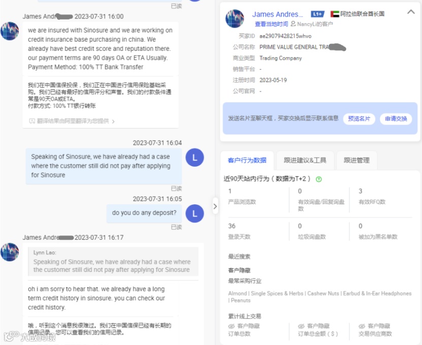 5.下单方主动建议出口企业投保出口信保或咨询信保买方限额,并主动提供资信报告、财务报表等。