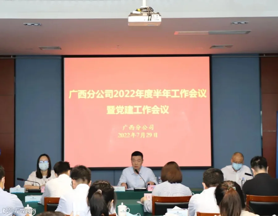 7月29日,广西分公司召开2022年半年工作会议暨党建工作会议,第一时间传达公司半年工作会议精神,总结分公司上半年工作,分析当前形势,研究部署下半年工作任务。