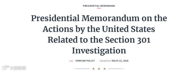 北京时间23日凌晨00:40,美国总统特朗普签署总统备忘录,依据“301调查”结果,将对从中国进口的商品大规模征收关税,并限制中国企业对美投资并购。他大笔一挥,直接点燃中美贸易大战的导火索