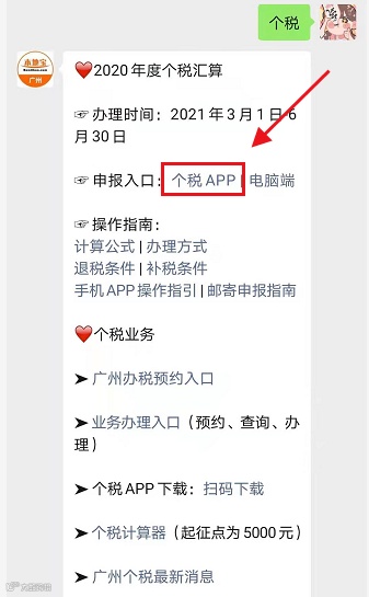 可在手机应用市场上下载,也可进入广州本地宝微信公众号,在公众号首页对话框发送【个税】获取下载入口。