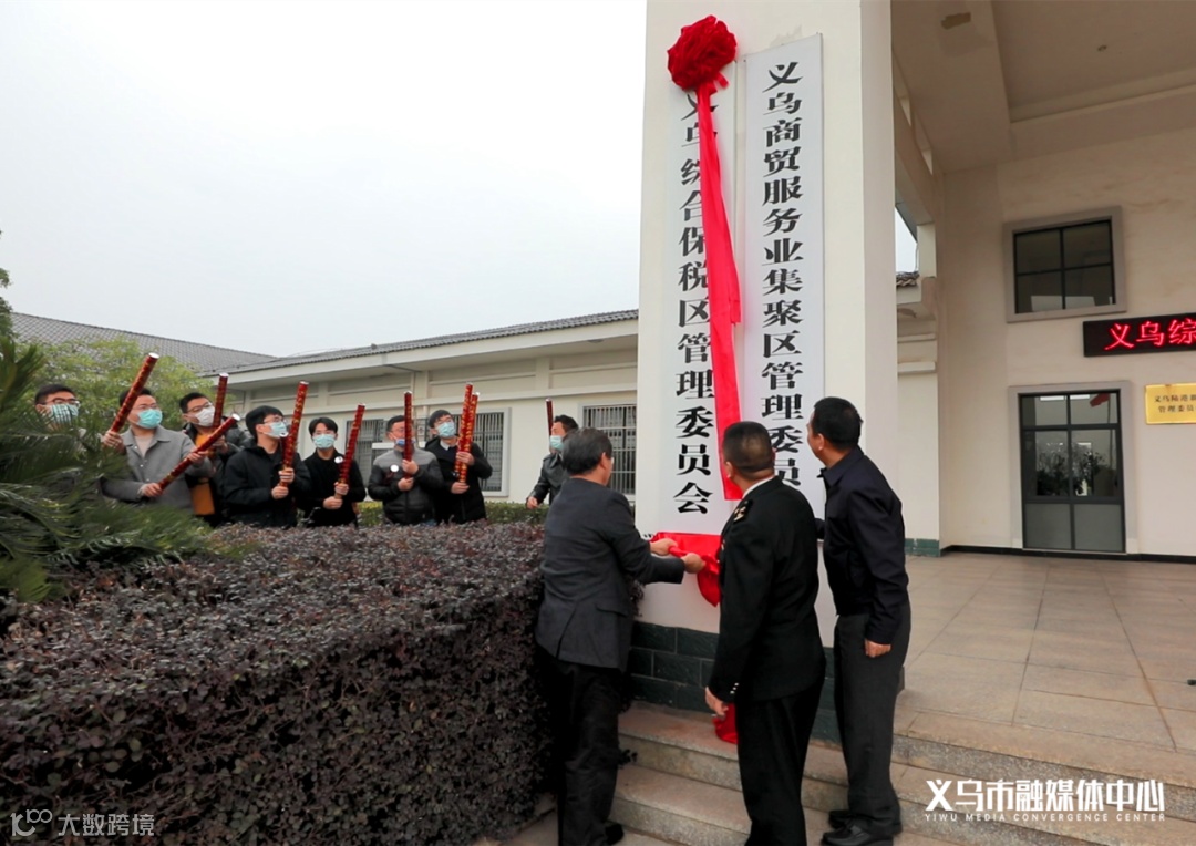 义乌海关关长应雷、商贸服务业集聚区(综合保税区)管委会主任骆华勇、副市长葛巧棣共同为义乌综合保税区管理委员会揭牌。集聚区(综保区)管委会、义乌海关、商城集团相关负责人参加揭牌仪式。