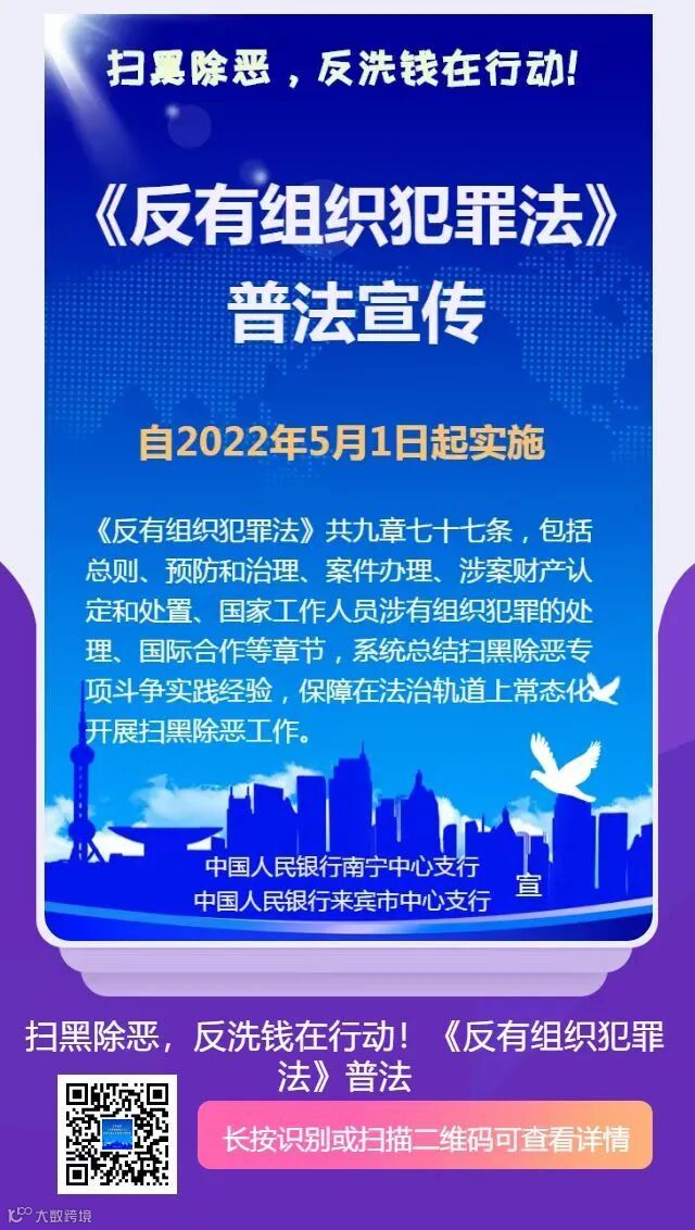 中国信保广西分公司制定颁布实施《反有组织犯罪法》,是常态化开展扫黑除恶斗争的必然要求,是党中央开展扫黑除恶斗争的标志性成果,是构建中国特色反有组织犯罪制度的成功探索和伟大实践。广西人民银行系统邀您一起走进《反有组织犯罪法》,见证扫黑除恶斗争中的反洗钱力量。
