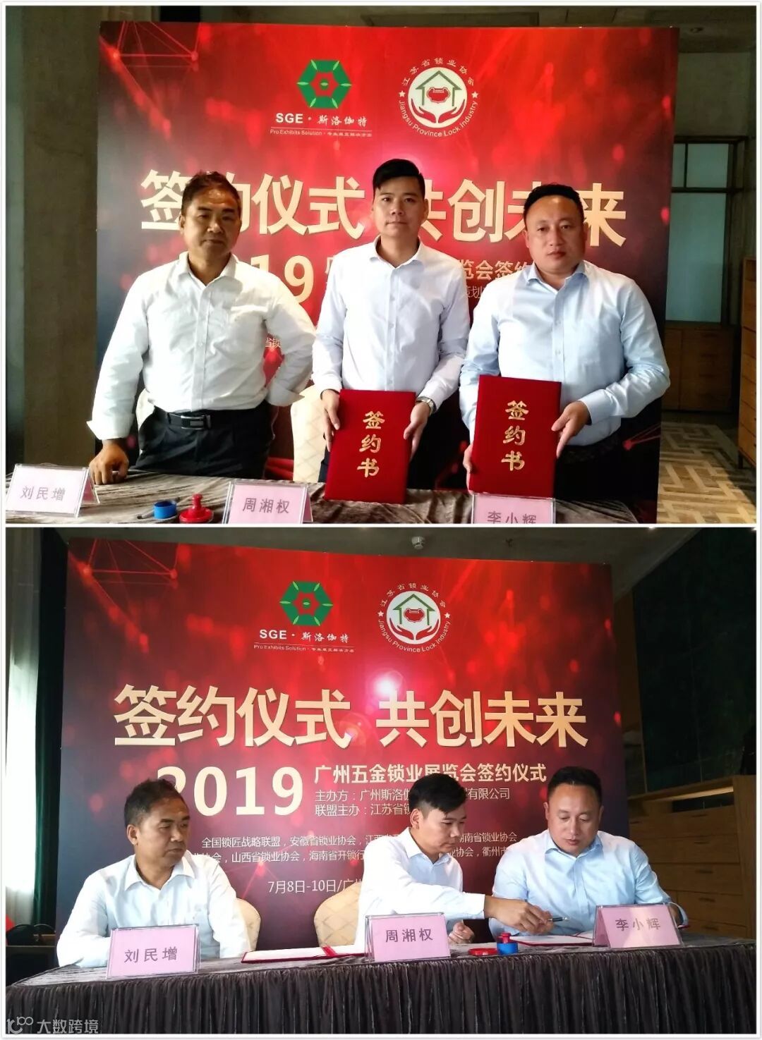 9月30日,江苏省锁业协会李小辉会长,及全国锁匠战略联盟刘民增会长代表全国各省10个锁业协会不远千里来到广州,与广州斯洛伽特展览策划有限公司董事长周湘权先生,在电视台记者以及恩米斯传媒的见证下举行了隆重的签约仪式。