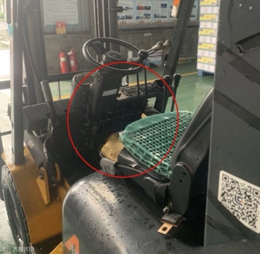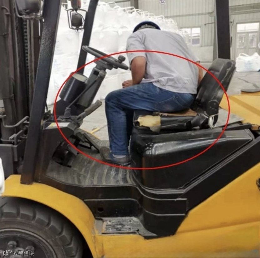 叉车驾驶员离开时未拉手刹,未拔钥匙
