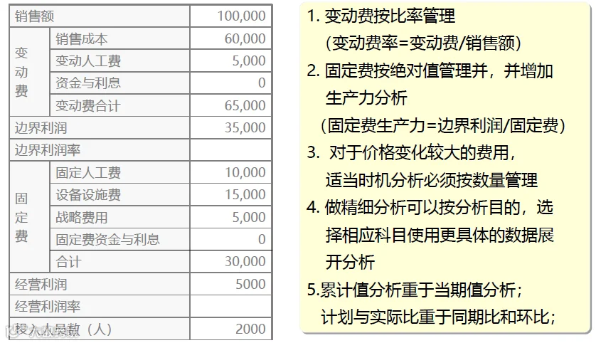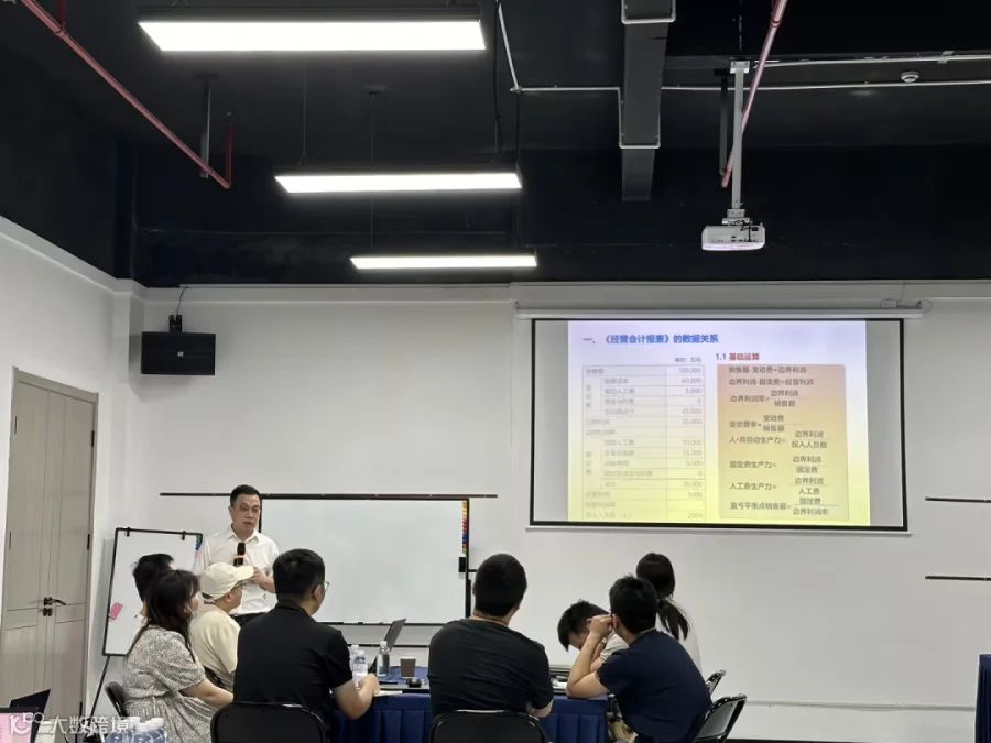 在开展业绩分析之前,需要再次回到《经营会计报表》的内容,销售额、变动费、固定费、分摊费等是经营会计报表的重点科目类型,也是业绩分析的重点数据。只有理解经营会计科目之间的关系,才能更好的去理解业绩分析的逻辑。经过四个月的实践,各巴成员已对经营会计的科目非常熟悉,在业绩分析的课堂中,黄老师又带着各巴成员再次回顾经营会计报表的基础运算公式,并共同学习费用类科目的分析方法,为构建业绩分析报告的模型奠定基础。