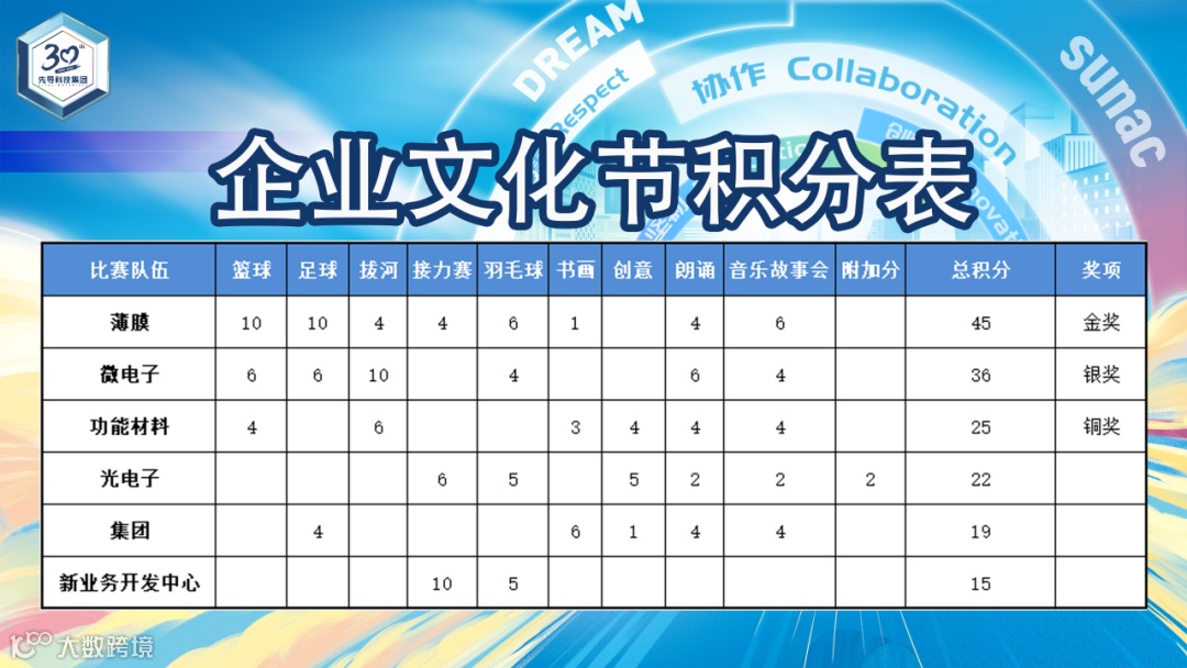 自11月以来,文化节共开展9项赛事,涵盖文体、艺术等多方面。各项比赛均设置积分,最终根据团队总积分评选出2025年企业文化节“先导之星”前三奖项。