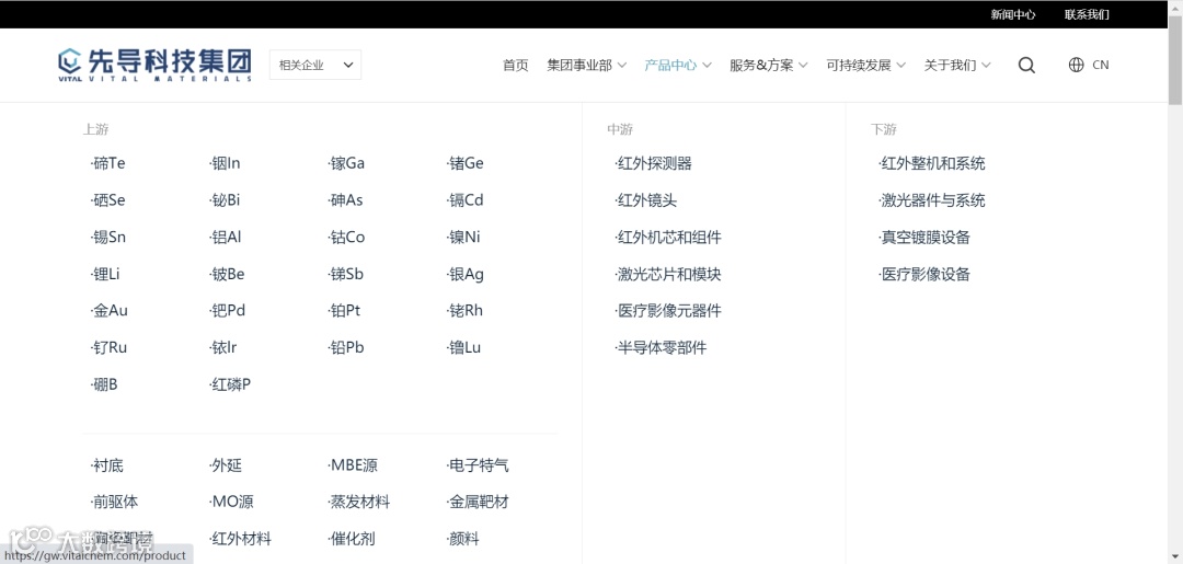 新版官网导航栏一键关联集团相关公司网站,畅通各平台联络渠道,并分设“集团各事业部、产品中心、服务&方案、可持续发展”等板块,多维度的查找路径方便用户更快速了解产品信息和行业应用。产品中心板块整合了集团产业链中的上游、中游、下游各类产品,涵盖从原材料至器件、模组、系统和装备等具体种类,产品清单一目了然。