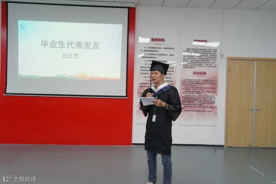 薄膜事业部战略采购供应部的员工丘红艺作为毕业生代表上台发表感言,他首先感谢公司为大家提供了一流的教学设施和优秀的师资力量以及老师们的传道授业解惑,让大家度过了一段充实的学习时光。他表示未来依然会保持热爱学习的精神,不断提升自身能力,为先导科技集团发展添砖加瓦贡献一份力量!