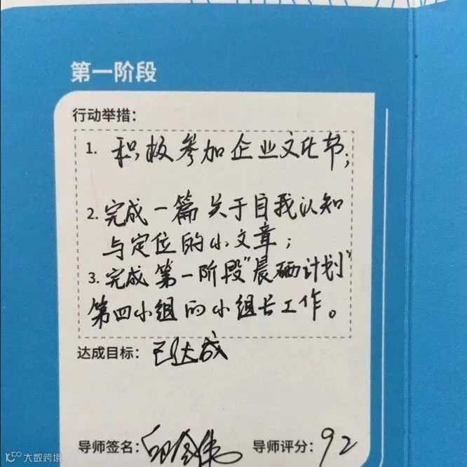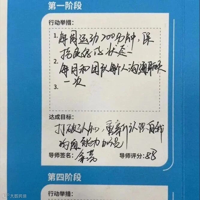 所有的挑战在完成后,均会和导师进行链接沟通,导师评估达成情况,给予评分。