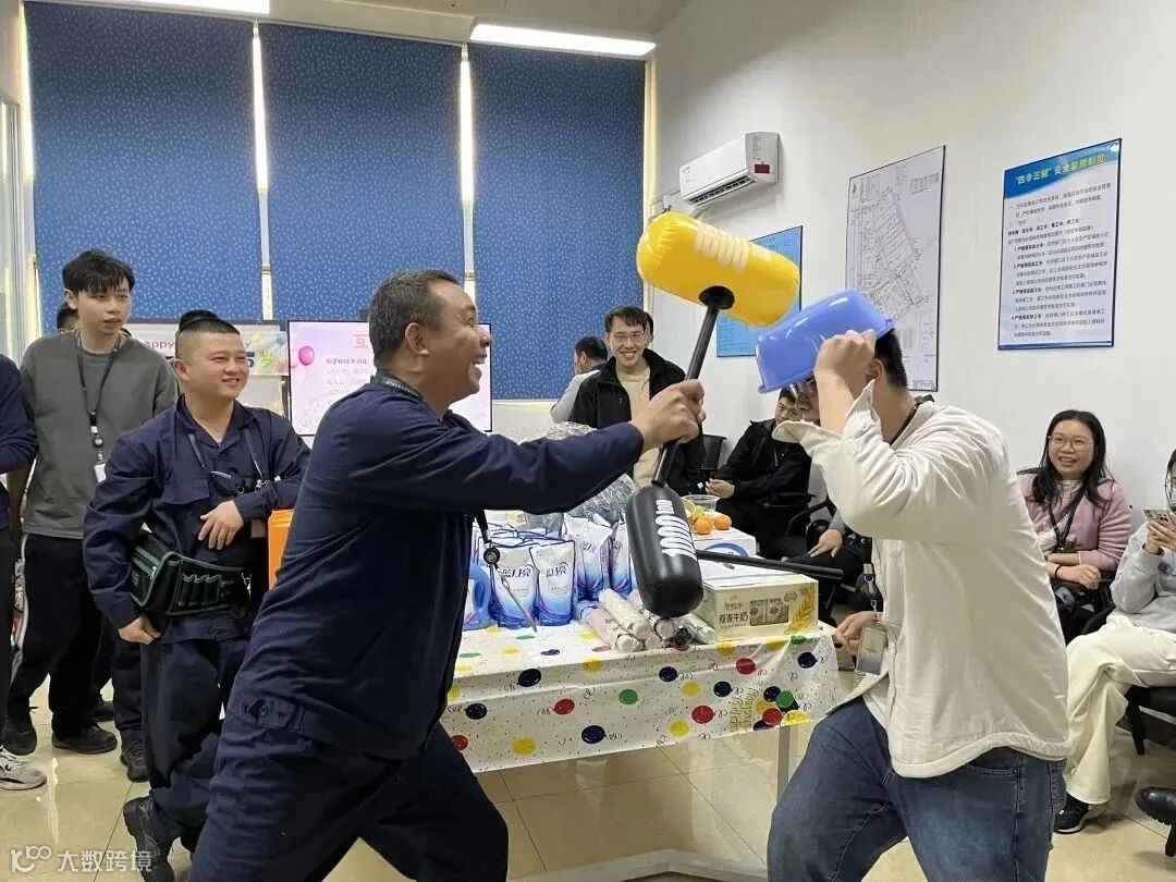 29日,长信精密为第四季度生日的员工组织了一场好玩又好吃的生日会,通过玩帽子和锤子等互动小游戏赢取礼品,现场欢笑声不断。
