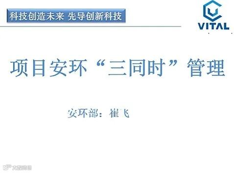 根据《领航计划之人才培育项目》,安环部开展第一期线上培训课程《项目安环三同时管理》,由集团高级安环经理崔飞主讲,参训人员有集团及各事业部及各子公司的基地负责人、安环负责人及负责三同时具体业务的同事,人数达62人。