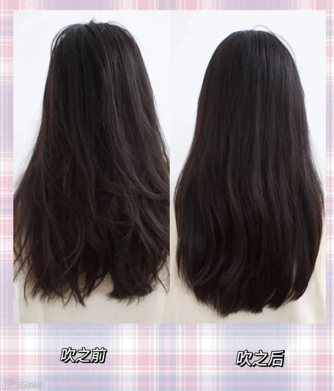 2、吹风机从上往下吹,让头发更加顺滑
