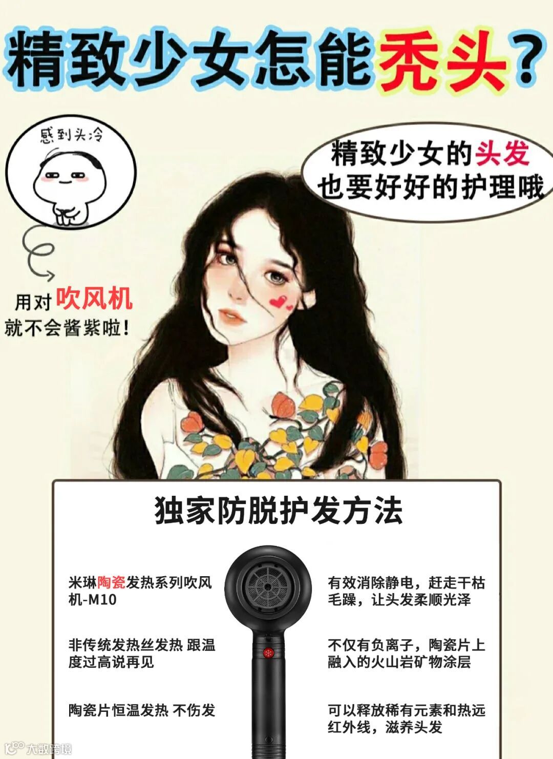 与其使用便宜劣质伤发吹风机,及长期使用且效果不明显的防脱洗护产品,不如投资一把实惠耐用能立竿见影解决头发损伤的硬件好吹风。