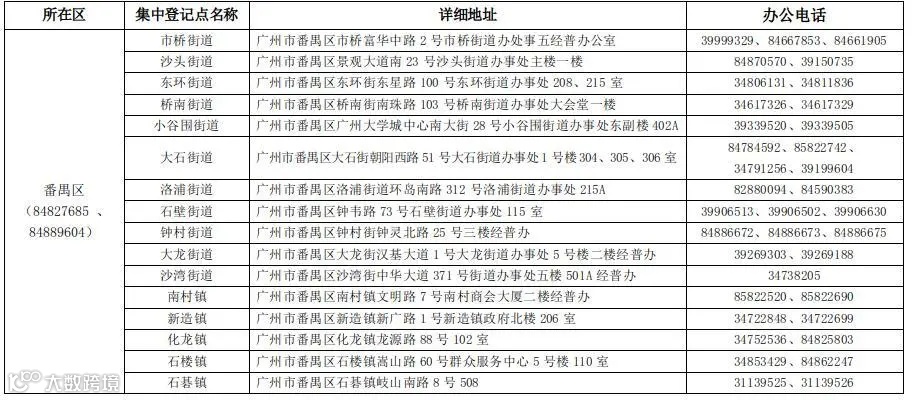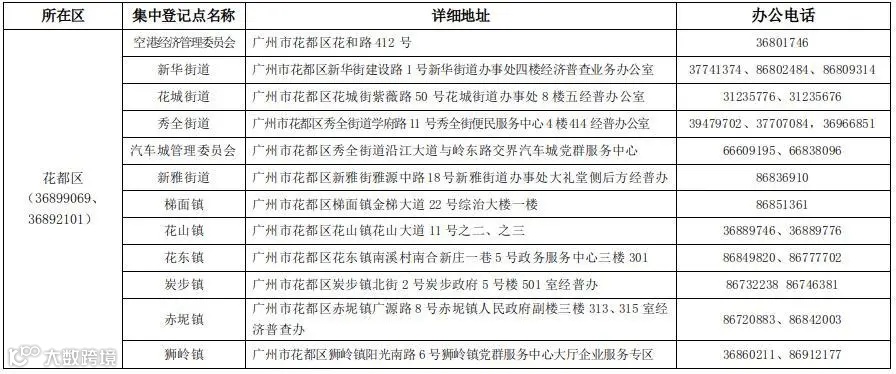 广州市第五次全国经济普查各街道集中登记点联系方式