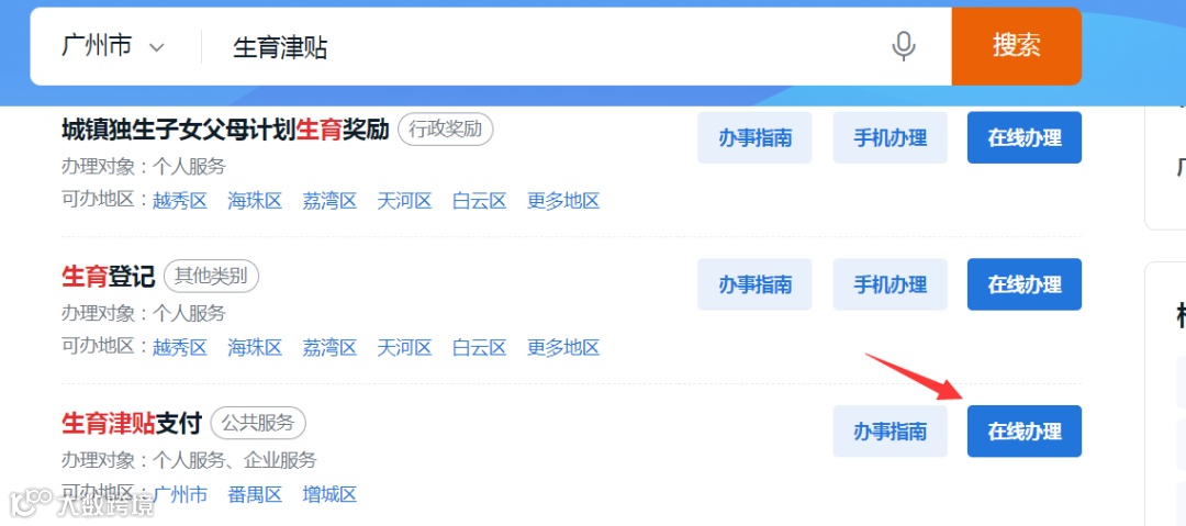 1.打开“穗好办”小程序或APP,并搜索“生育津贴”。