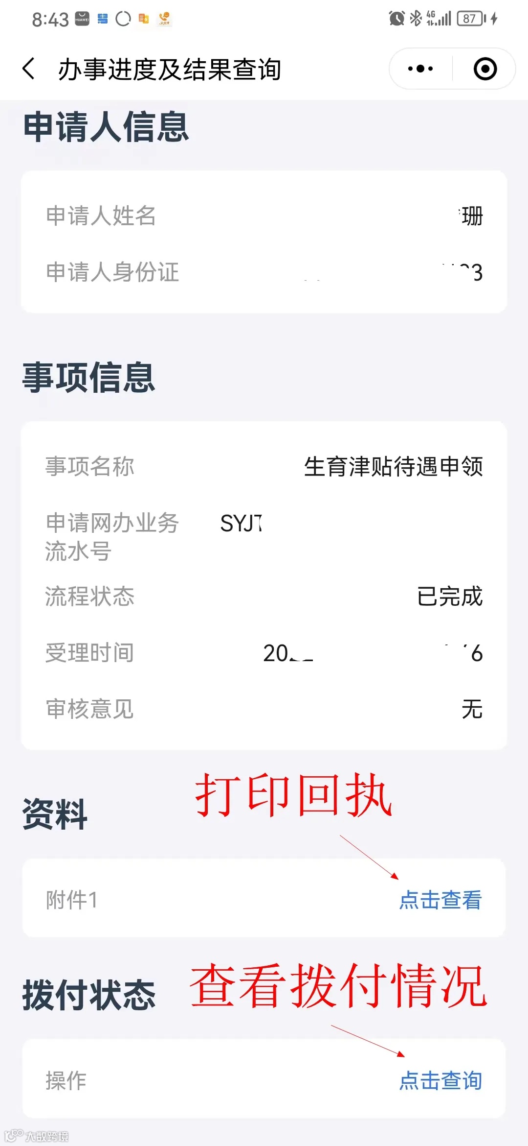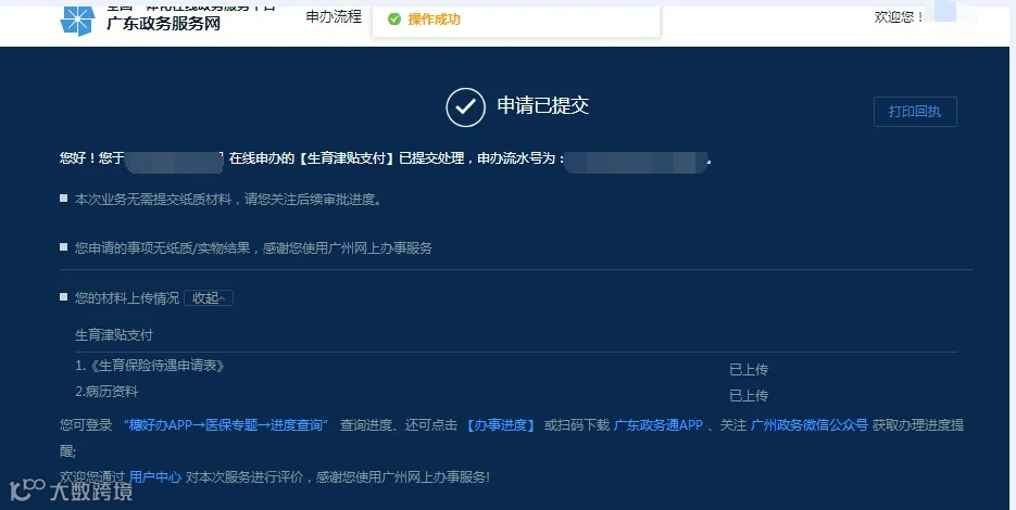 4.查询办理进度与打印回执。