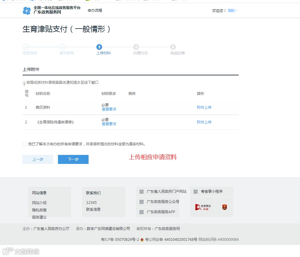 7.填写完表单,上传相关资料。
